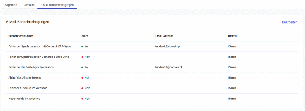 Für die vollständige Unterstützung des Pfandsystems sind erforderlich: Comarch ChatERP ist ein Tool, das wir kontinuierlich weiterentwickeln und mit neuen Funktionen ausstatten. Im Rahmen der Zusammenarbeit mit Comarch ChatERP wurden zusätzliche Funktionen im Bereich Bestellungen aktiviert. Dadurch erhält die Künstliche Intelligenz die Möglichkeit, einfache Aufgaben auf den Daten deines Webshops auszuführen. Der virtuelle Assistent kann unter anderem: Mit dem neuesten Update stellen wir eine zusätzliche Funktion zur E-Mail-Kommunikation für Administratoren bereit, die die laufende Verwaltung des Webshops erleichtert. Ab sofort kannst du als Administrator entscheiden, ob und welche zusätzlichen E-Mail-Benachrichtigungen du an eine von dir gewählte Adresse erhalten möchtest. Darüber hinaus kannst du die Häufigkeit der Benachrichtigungen individuell an deine Arbeitsweise anpassen. Ab heute kannst du E-Mail-Benachrichtigungen aktivieren zu folgenden Ereignissen: Wir freuen uns, die Einführung eines neuen, wichtigen Tools zur Kundenbindung in der Vorlage Rubin bekannt zu geben – das Treueprogramm. Diese umfassende Lösung ermöglicht es, treue Kunden zu belohnen und gleichzeitig wirksam zu wiederholten Käufen zu motivieren. Wichtigste Funktionen des Treueprogramms: Wenn du eine ältere Browserversion verwendest, wird beim Anmelden im Admin-Panel eine entsprechende Nachricht über die ungültige Browserversion angezeigt, zusammen mit Links zu den aktuellen Versionen der Browser. Die Mindestbreite des Webshops beträgt 980 Pixel. Die empfohlene Auflösung bei der Nutzung von Comarch Webshop ist 1280×800 Pixel.