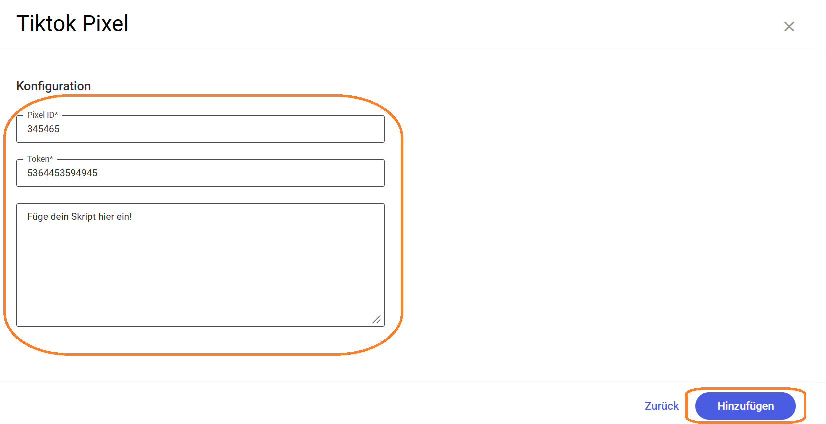 Schritt 2: Fülle die Pixel-ID, das Token und das Konfigurationsskript aus und klicke anschließend auf Integration hinzufügen.